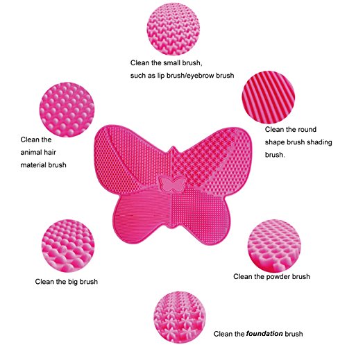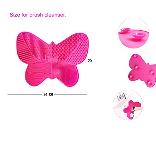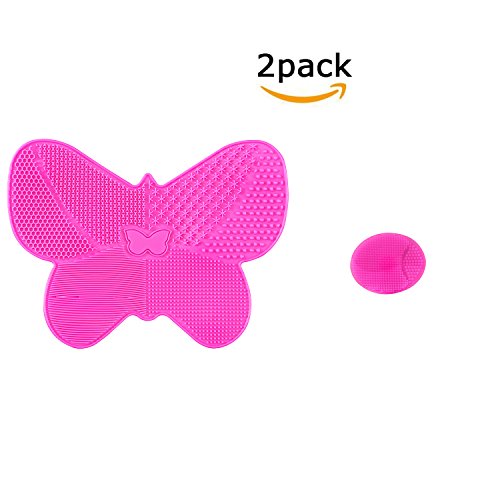 CH Beautyu Makeup Brush Cleaning Mat,Makeup Brush Cleaner Pad Set of 2 Cosmetic Brush Cleaning Mat with Facial Makeup Brush Cleaner Washing Tool,Pink