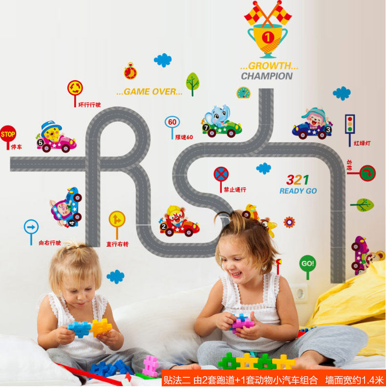 可移除墙贴纸贴画卡通儿童房间赛车跑道铁轨马路汽车竞赛墙壁装饰