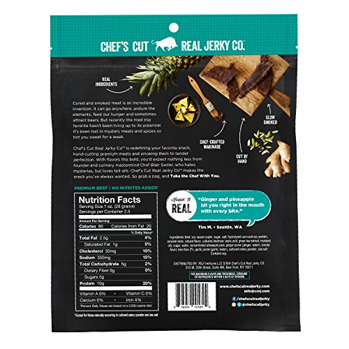 ReleaseDate : 2017-01-07 Studio : Chef's Cut Real Steak Jerky Publisher : Chef's Cut Real Steak Jerky Binding : Grocery Product Description Chef’s Cut Real Jerky was created by Chef Blair Swiler Dennis Riedel. Swiler was caddying alongside Riedel, and shared his homemade jerky with him ? real cuts of premium beef, right there on the golf course. They then teamed up and began smoking and selling Chef’s Cut Real Jerky to golf country clubs across the U.S. Today, Blair Dennis’ vision is to change the way people, on and off the golf course, think about jerky. Every bag of Chef’s Cut Real Jerky is made using hand-cut, premium pieces of meat that are marinated with real ingredients and cured using a proprietary smoking process. The result is a tender, nitrite-free, gluten-free and protein-packed jerky that is the best tasting and highest quality jerky in the market. Chef’s Cut Real Jerky is the perfect chef-crafted snack that you can take with you wherever you go, even to places Chefs can’t.? 0