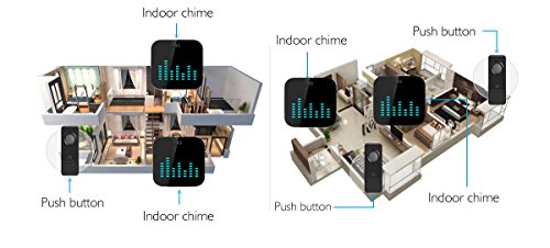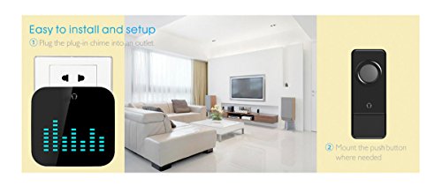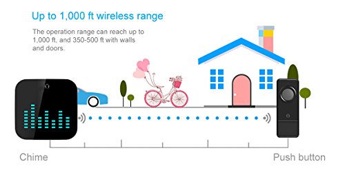 -. Feature : Easy Set Up: Broken doorbells are hard to replace. With Chimptron's energy-saving wireless doorbell, installation is simple. Our receiver and transmitter are pre-paired for installation. / 52 chimes (16 chord) to choose from and 4 steps volume control (25~110dB). / IP44 waterproof transmitter with soft silicon press button, it is able to withstand rain or shine. / With up to 1,000 ft operating range in open space, 350-500 ft audible range. / Easy to choose your change and select your favorite ringtone with forward and backward button.