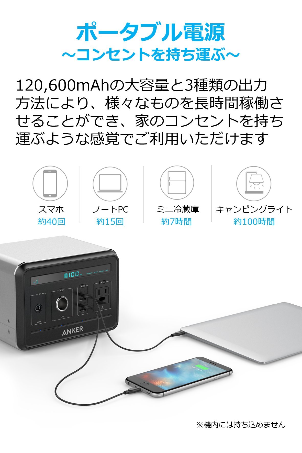 With 12V cigarette lighter socket, AC outlet, 4 fast-charge USB ports (equipped with PowerIQ), you can charge a wide range of appliances and appliances.