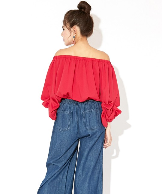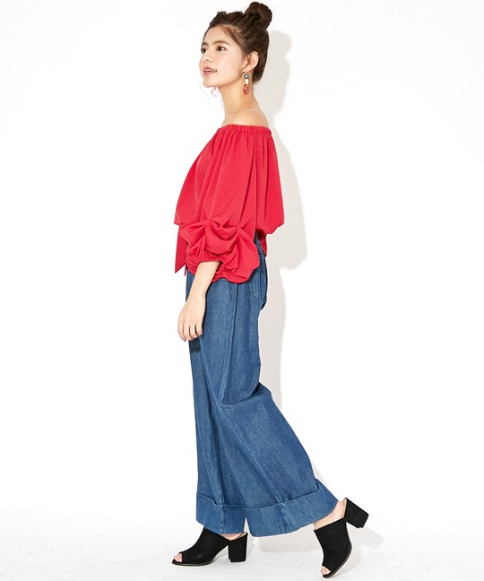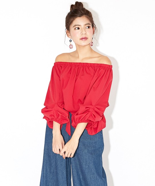 上品で大人っぽいとろみのある素材がオフショルでも若くなりすぎず、カジュアル、フェミニンどちらのコーデにも合わせられます。