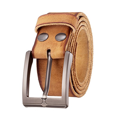 -. Feature : Men's Genuine Leather Belt adopts the first Layer of Cow Leather Italy,100% Genuine Leather. / 1.25" wide belt, suitable for size 30-54 waist, plz buy one size larger than your waist. Belt Strap width dimensions is around 1.2 inches. / High quality and durability of the belt, for a longer endurance and better upholding,sophisticated look and feel,Advanced process craft leather belts features a classic smooth finish and exquisite stunning stitching on top & bottom.to be worn for everyday use, and for any casual occasions. / Classic Buckle Closure, this Buckle accessory adds the perfect touch to any pair of jeans. Create a casual fashion statement! / GIFT BOX - beautiful package,Make a big impression! 24 x 7 professional and efficient email support,12 months buy return or refund, quality garanteed.