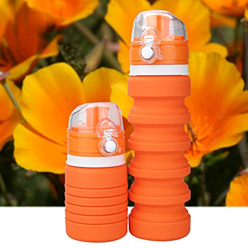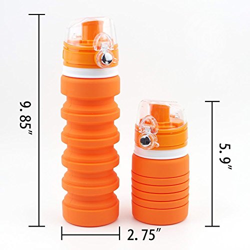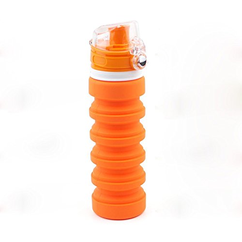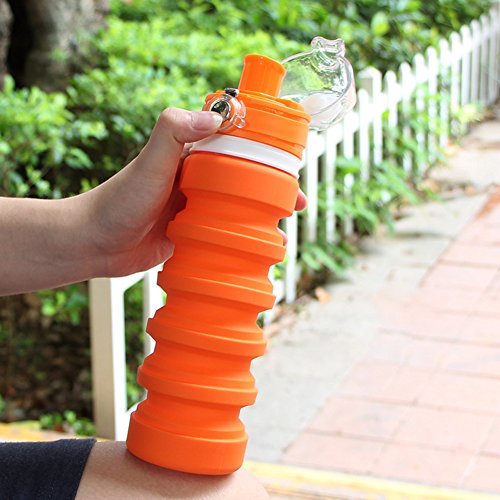 Liu Mei Collapsible Sports Travel Water Bottle - 18oz Leak Proof Eco-Friendly BPA Free Silicone Folding Reusable Portable Drinking Bottles w/ Lid Cap . Lightweight for Traveler Walking Camping Hiking