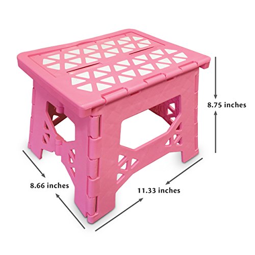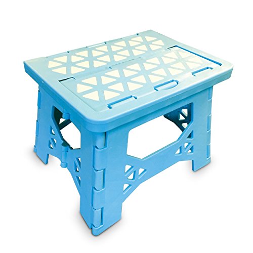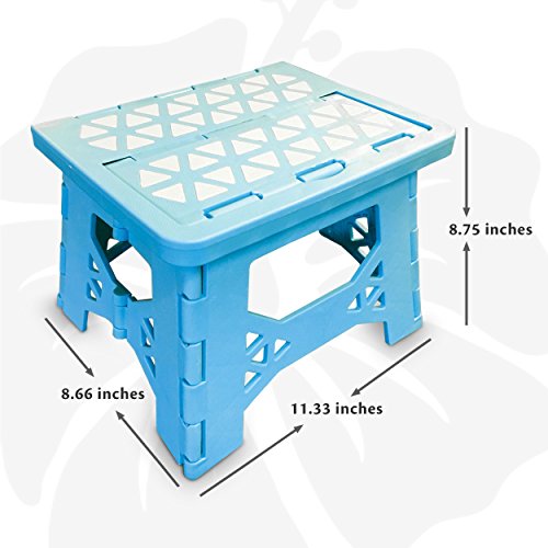 -. Feature : SECURE LOCKING SYSTEM - When folded out it locks solidly in place with a new innovative 3 point locking system. This solves many of the problems with middle folding step stools that are not as stable and can catch childrens fingers. This is straight out safer for your family. / LIGHTWEIGHT AND PORTABLE - A handle makes it easy for your child to pick up and carry to where they want to get to. Folds away for easy storage under the bed or beside a cabinet to be out of the way when not in use. . / PERFECT FOR BUILDING KIDS Confidence and Independence. Whether it's turning on a light, reaching an item of a higher shelf in the nursery, standing at the kitchen bench, in the bathroom brushing their teeth or using the toilet, your toddler will love this step stool. They can even use it as a chair or use it as a table. / THE DETAILS - Made of durable yet lightweight plastic The Step Stool stands 8.75 inches high, is 8.66 inches wide and 11.41 inches in length. It can hold 220 pounds, which means many adults can use this fold away step stool in the kitchen, around the home to reach high storage cupboards. / NON SLIP GRIP - The feet of the stool have rubber grips to keep the stool stable on potentially slippery floors like tiles, wood or vinyl. The top of the stool has soft grip diamonds for ensuring little feet are stable when on the stool.
