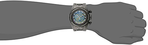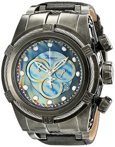 -. Feature : Chronograph functions with 60 second, 30 minute and 1/10 of a second sub dials; date window between 4:00 and 5:00; invite reserve 5-year warranty included with shipment / Brown, rainbow dial with silver tone and white hands and hour markers; luminous; unidirectional gunmetal stone distressed ion-plated stainless steel bezel with stainless steel wire accent; stainless screw-down crown; limited edition; flame fusion crystal; gunmetal stone distressed ion-plated stainless steel case; black distressed leather strap / Swiss-quartz movement / Case diameter: 51mm / Water resistant to 660 feet