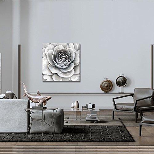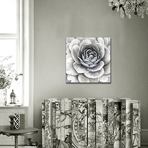 5.It is an interesting floral picture in shades of gray on white canvas. The picture has highlighting (paint) that gives it a bit of a 3D effect.