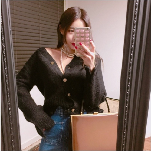 Women`s Vintage Short Mini Cardigan Black Ivory Light Blue Red