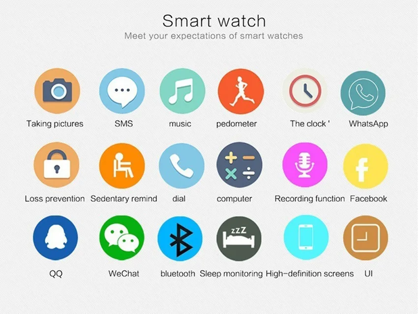 Function:Passometer,Fitness Tracker,Sleep Tracker,Message Reminder,Call Reminder,Answer Call,Dial Call,Remote Control,Push Message,24 hour instruction,Alarm Clock,Week,Month,Interactive Music,Calendar,Calculators