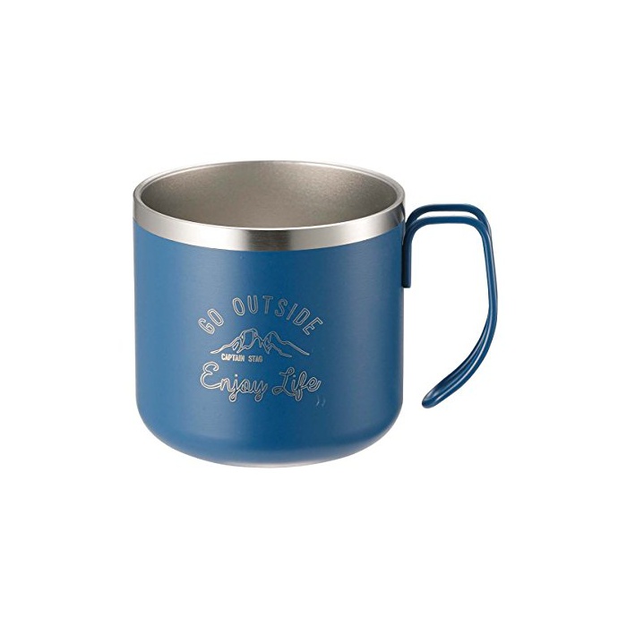 캡틴 스태그(CAPTAIN STAG) 머그컵 컵 더블 스테인레스 진공 단열 보온 보냉 350ml 블루 몽데 UE-3433