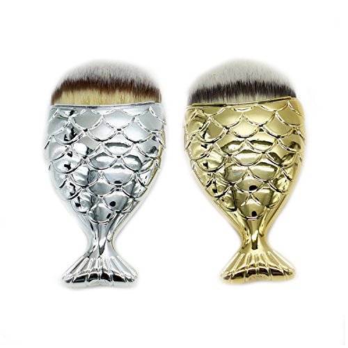 -. Title : HUELE 2 PCS Mermaid Fish Makeup Brushes Fishtail Bottom Brush Powder Blush Makeup Cosmetic Brushes Tool- Gold, Silver