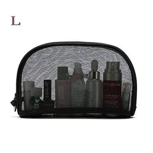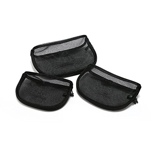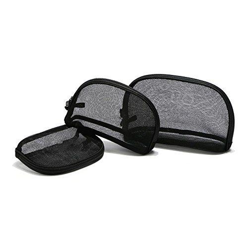 Elephant Xu Transparent Sundry Bag 3 Piece Assorted Size Cosmetics See Through Make Up Bag/Organizer, Black Mesh (1 Pcs Large Size)