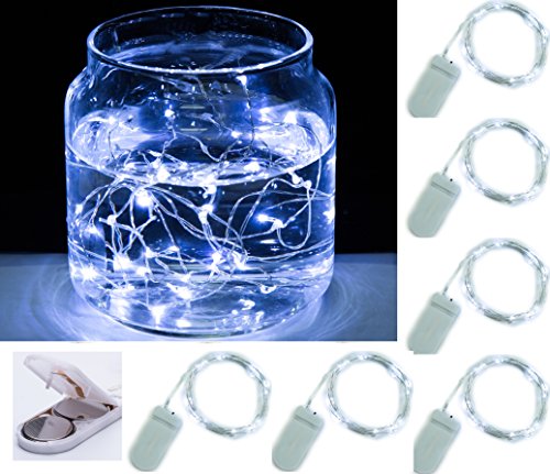 Set of 6pc Micro 20 Leds Fairy Starry String Lights On 3.5 Ft Extra Thin Silver Wire For Flower Pot, Trees, Wedding, Holiday, Party Decoration-2 x CR2032 Batteries Required and Included, Pure White