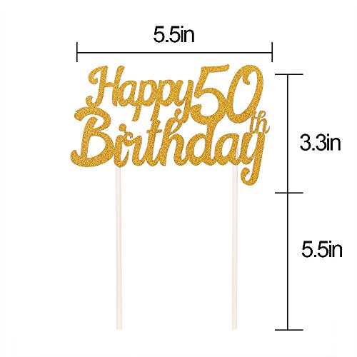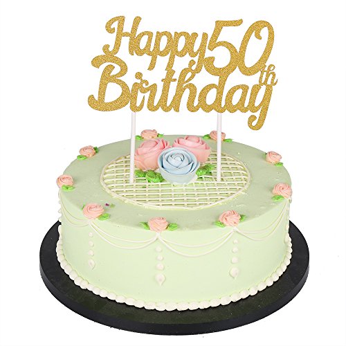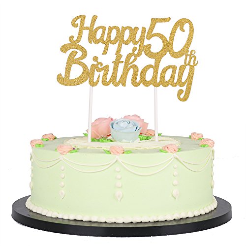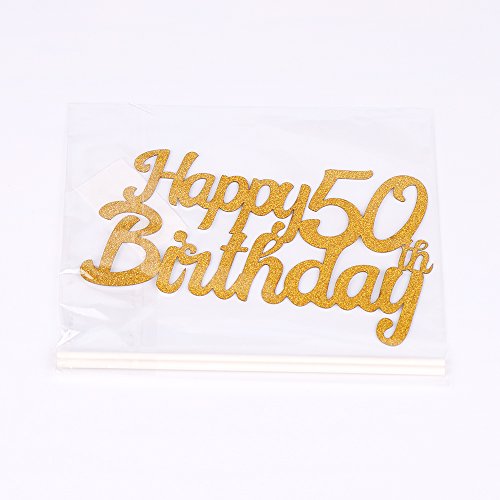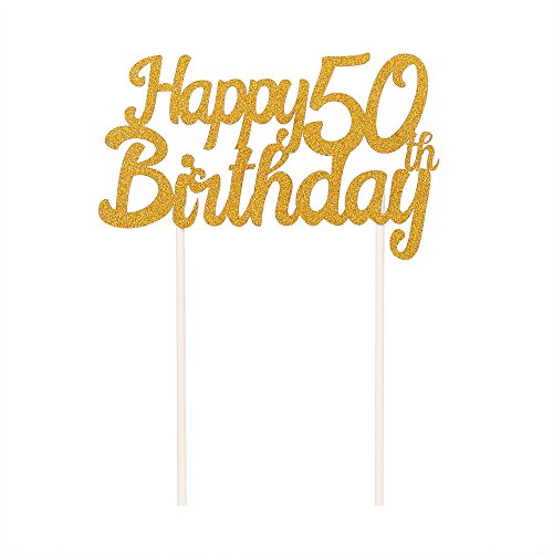 LXZS-BH Gold Glitter Happy Birthday Cake Topper,Party Cake Decoration Supplies (50th)