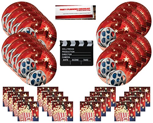 Hollywood Movie Party Supplies Bundle Pack for 16 guests (Bonus 7 Inch Movie Set Clapboard Plus Party Planning Checklist by Mikes Super Store)