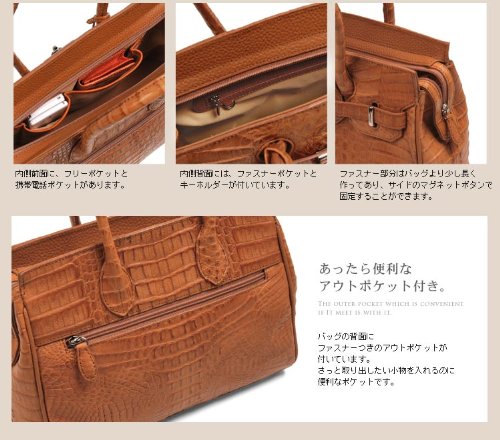 -. Feature : カイマンを使用したエレガントなデザインのハンドバッグ。 カイマンは中心部分が立体的で迫力ある表情が魅力の革です。 シャイニング加工とマット加工の2種類からお選びいただけるバッグです。 / (No. 309047 r ) / ■サイズ 横30cm/高さ21cm/厚マチ11.5cm/ハンドル立ち上がり11.5cm/ハンドル周囲32cm 【素材】カイマン/内装:スエード調生地、一部牛革/底面:牛革 【重量】約750g 【仕様】 メインポケットは仕切りのないつくりになっています。 アウトポケットは、背面に付いています。 内側:携帯ポケット×1/フリーポケット×1/ファスナー付ポケット×1/キーホルダー×1 外側:ファスナーポケット×1 【備考】 天ファスナーはバッグより少し長く作ってあり、サイドのマグネットボタンで固定するこ