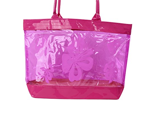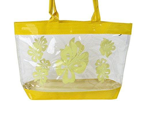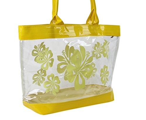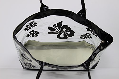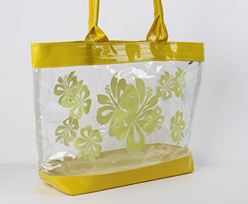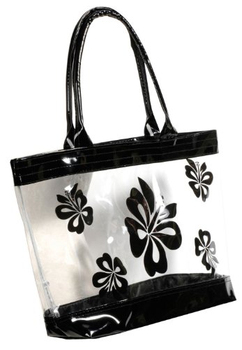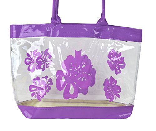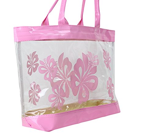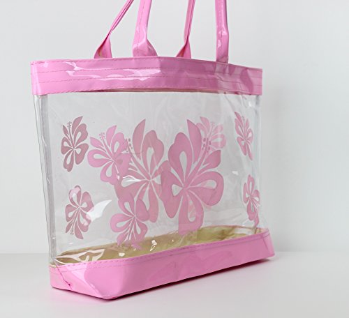 Product Description This is a beautiful stylish clear plastic tote back with a Hibiscus flower print. Perfect use for causal event, beaches, gym, salon and everyday use! This measures 12"H x 18"W and fits over most shoulders perfectly and is suitable for all ages. 0