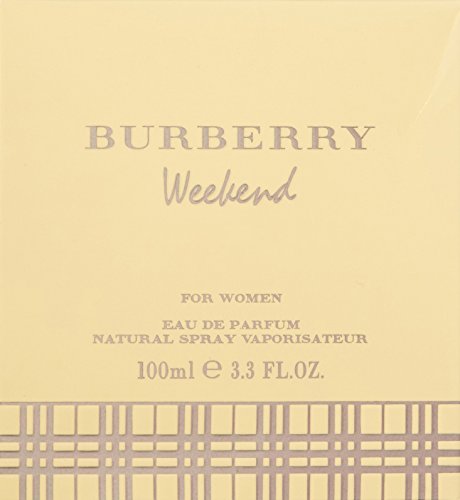 ReleaseDate : 2015-02-01 Studio : BURBERRY Publisher : BURBERRY Binding : Health and Beauty Product Description Weekend for Women is a feminine fragrance with a contemporary, refreshing, citrusy tone. A sheer fragrance with top notes of tangerine, tree sap and reseda plant. Delicate floral heart notes of wild rose, peach blossom, iris and hyacinth, invigorated by a subtle splash of nectarine. The low notes of cedar wood and sandalwood add depth for a relaxed and fresh scent. 0