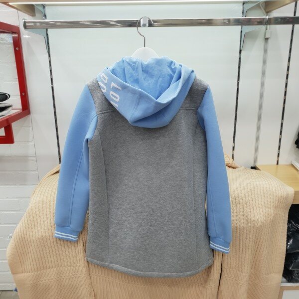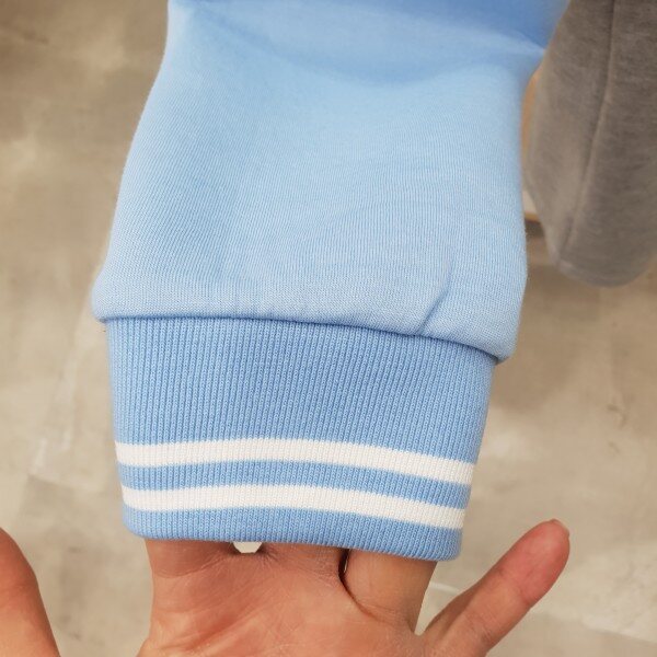 2019년 봄 상품입니다. 그레이, 라이트 블루 조합으로 어느 옷과도 매치하기 좋고안감이 없는 네오플랜 점퍼이기 때문에 간절기에 착용하기를 추천합니다.모자는 면소재로 부드러워 부한 느낌을 덜었습니다.모자에 레터링 포인트가 있습니다.모자는 탈부착이 가능하여 후드티와 함께 입기도 편안합니다.파란부분의 색감은 모자 확대샷과 가장 비슷합니다.
