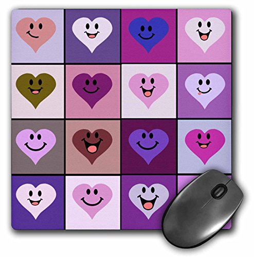 Pink happy heart squares pattern - purple and pinks smiley face hearts- Mouse Pad, 8 by 8 inches (mp_113108_1)