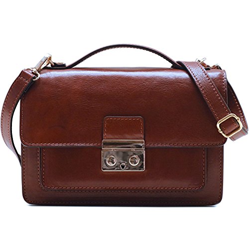 Milano Mini leather satchel cross body bag is crafted from full grain calfskin leather. This leather was painted and tanned in Tuscany by hand so the color penetrates deep into the leather - thus, scratches are not as evident and easy to polish out. This is the oldest form of leather tanning - no chemicals are used- only vegetable extracts and natural oils. The 2 button closure (non-locking) is solid brass. Includes detachable cross body strap, key hook, and card holder. Made in Italy.Feature