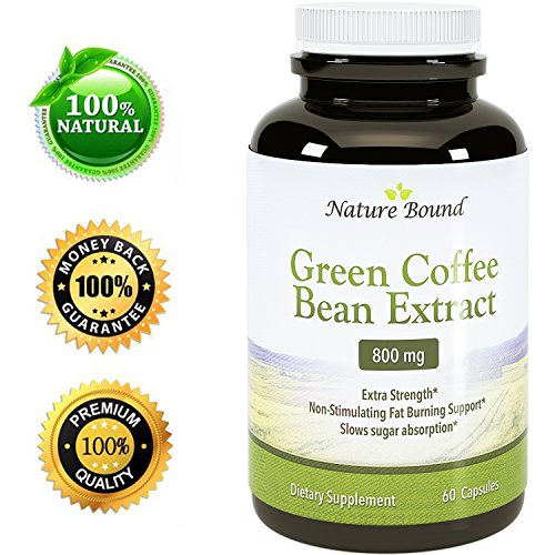 -. Feature : PURE GREEN COFFE BEAN EXTRACT 800mg controls hunger and reduces cravings naturally and effectively. With other benefits such as antioxidant protection increased energy boost metabolism burn fat and suppress appetite, this high gradeproprietary blend of raw unroasted Arabica coffee beans using the state of the art extraction method not only slims the body but detoxes and cleanses it as well. / LOSE WEIGHT AND KEEP IT OFF- Eating healthy and exercising is extremely important. It helps to keep your body healthy and balanced. Sometimes when it comes to losing weight, it takes a bit more. Green coffee bean extract powder pills really help to boost metabolism safely in a way that few other things can. It is low in caffeine similar to a cup of decaffeinated coffee. With continued more energy reduced cravings burned fat leads to a noticeable reshaping of the body and last weight loss. / A POWERFUL ANTIOXIDANT- This bestselling weight loss supplement contains unique antioxidant call polyphenol chlorogenic acids or CGAs which simultaneously protect the body cells and organs from damaging environmental toxins so that you and your cells remain younger for longer. That means better skin health in the form of smoother skin less lines and wrinkles and a more even complexion. / SAFE AND EFFECTIVE- These vitamin tablets contain extremely potent and powerful Active ingredient green coffee bean extract is gentle but effective. They are more effective than powder, liquid, cream or gel versions of the product these capsules are side effect free and filler free that means you are getting a green coffee bean supplement nothing more and nothing less. / 100% CUSTOMER SATISFACTION. This premium bottle with 30 fast acting green coffee bean extract supplement pills is produced in a FDA, GMP certified facility and is a Non GMO product. Our customer mean the world to us, so we have developed this supplement with the choicest ingredients for guaranteed satisfaction results.