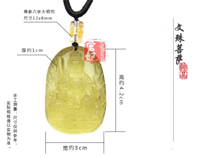 八大守护神吊坠 文殊菩萨 黄水晶吊坠 属兔本命佛佩戴