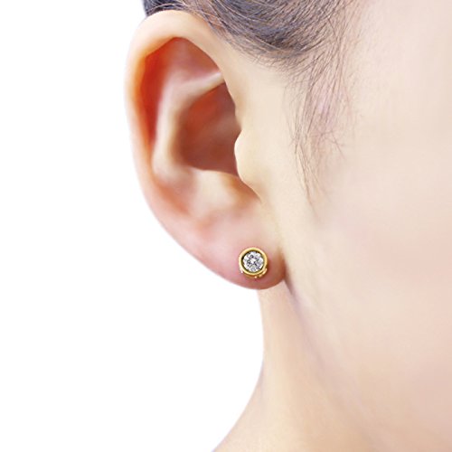 -. Feature : 14K Solid Gold / 5mm Diameter Small Tiny Bezel Earrings / Good for Second Piercing / Screwback Earrings may flop down loosely with slim earlobes. / Items is smaller than what appears in photo. Photo enlarged to show detail.