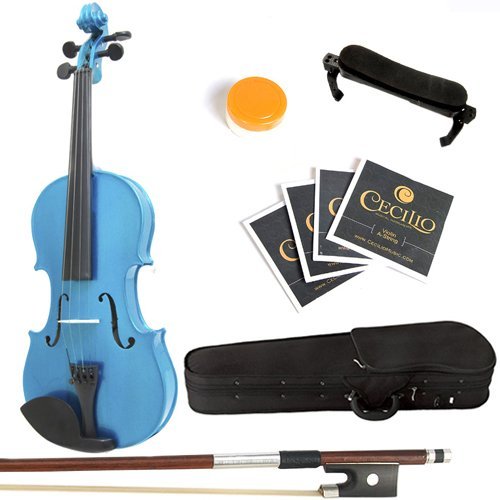 Mendini 4/4 MV-Blue Solid Wood Blue Violin Hard Case, Shoulder Rest, Bow, Rosin and Extra Str...