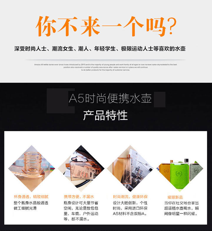 Name: Creative Paper Kettle Size: Small 19.4*10cm, Large 13*21.5cm Material: ABS+AS+silicone Color: Brown, gray, transparent, pink optional Introduction: There is a portable water bottle with a design personality, eco-friendly materials, and paper design that can be easily put into a handbag. It is very good to use at home or on the go. > >