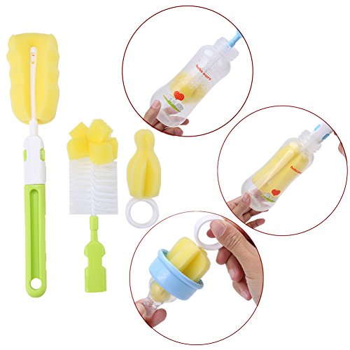 SAFE NON-TOXIC MATERIALS: Made of high quality sponge and plastic, it's safe and easy to use.The perfect and most suitable flexible tools to help you easily clean your baby bottle or nipple and get rid of bacteria and residue