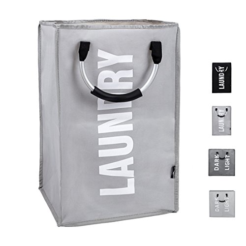 DOKEHOM DKA0012GY Single Laundry Bag, Large Foldable Laundry Basket, Collapisable Laundry Hamper, Folding Washing Storage Bin, Available in 2 Colors (Grey)
