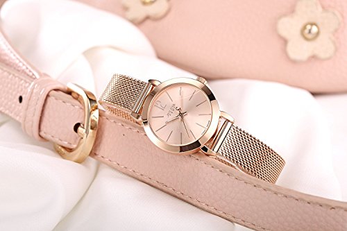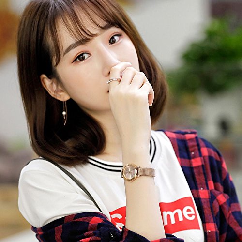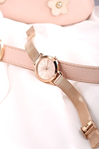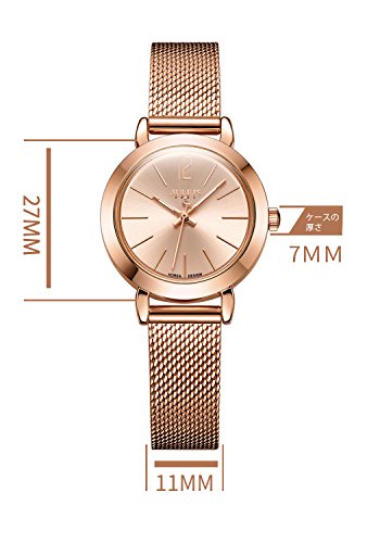 로즈 골드 초박형 케이스,심플하고 로즈 골드 다이얼과 로즈 골드 스테인레스 밴드는,팔을 더 깨끗함으로 보게 합니다.간단 조작 배치 잠그개에,손목의 길이에 따라,밴드의 길이를 조정하기 쉽다.패션과 아름답다디자인서는 봄이나 여름의 복장으로도 맞게 합니다.시계가 시간 보는 것뿐만 아니라,귀여워 예쁜 장식으로서도 딱입니다!