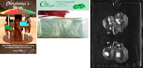 Cybrtrayd Mdk25RBk-C418 3D Snowman Chocolate Mold with Chocolatier's Bundle of 25 Cello Bags, 25 Red Twist Ties and Chocolatier's Guide