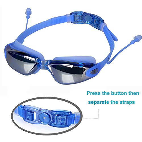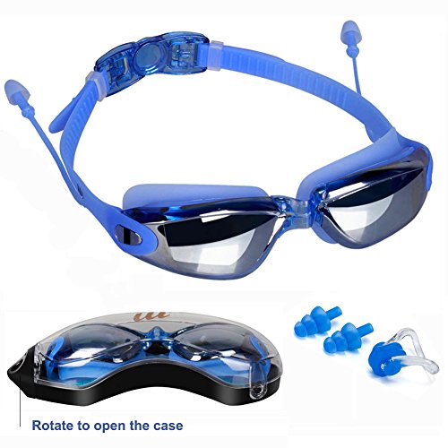 GIWOX Swim Goggles - Anti Fog Men Women Swimmig Goggles No Leaking UV Protection Goggle for Swimming , Strap Adjustable Swimming Glasses with Ear Plugs and Nose Clip for Adult Youth Kids ( Blue )