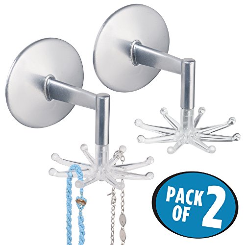 mDesign Spinning Jewelry Organizer Hooks for Bracelets, Necklaces - Pack of 2 Self-Adhesive, Chrome/Clear