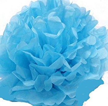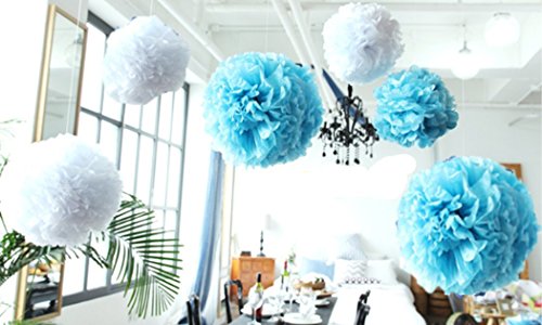 12pcs Mixed 3 Sizes White Blue Pom Poms Flower,Derker Fiesta Pom Poms Paper,Tissue Paper Flowers Kit,Pom Poms Craft For Baby Shower,Wedding Decor,Party Decor,Birthday Decor.. (Blue + White)