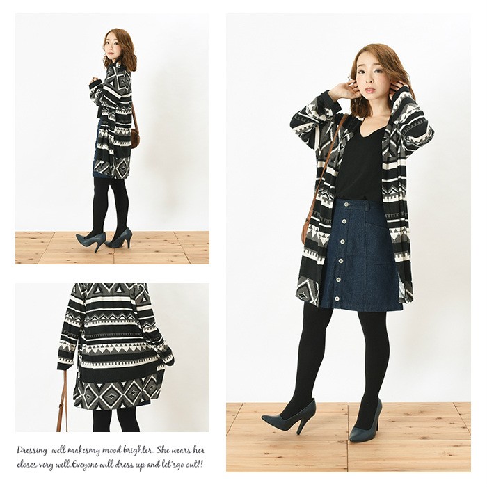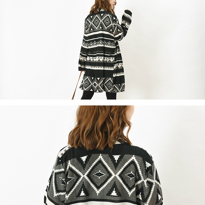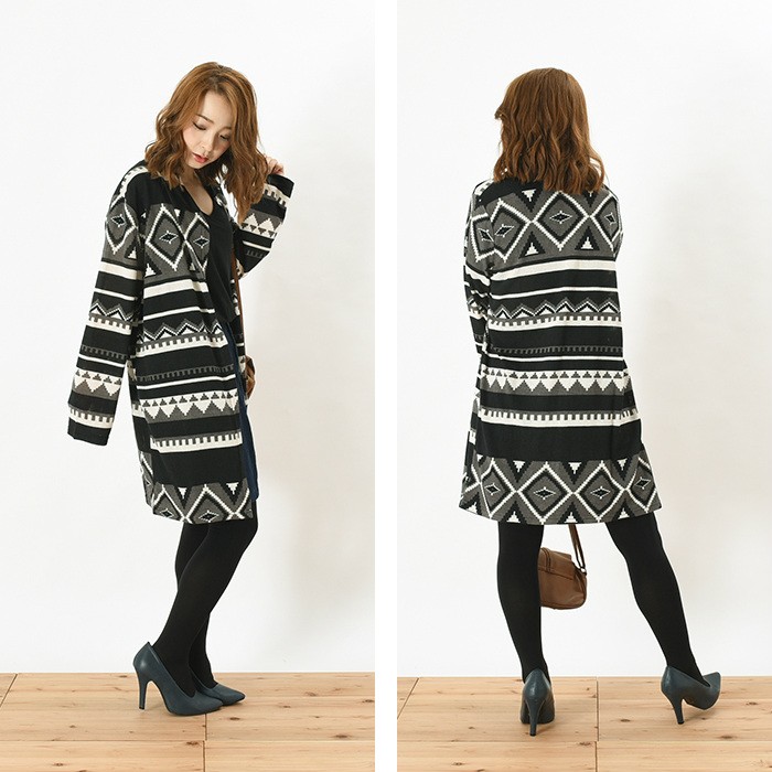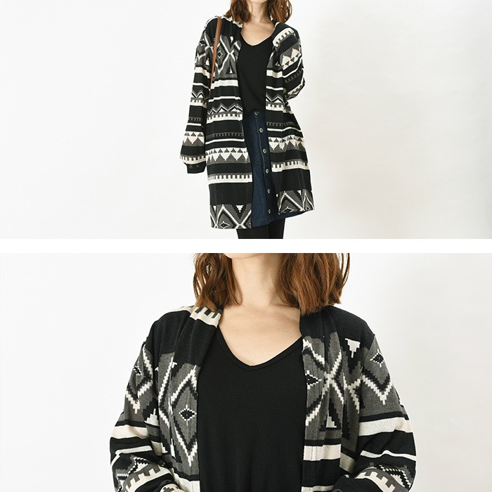 袖部分にオルティガ柄が切り替えになったデザインのカーディガンです。
