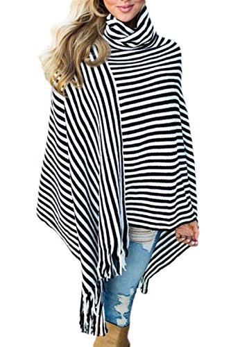 Product DescriptionWomen High Neck Stripes Tassel Cloak Asymmetric Longline Shawl0