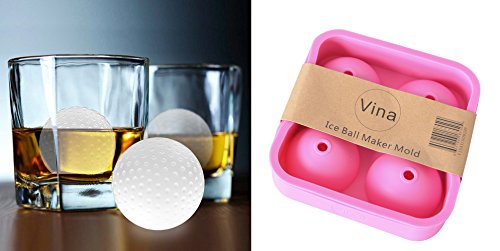 Vina Ice Golf Ball Maker Mold - 4 Large 2 Inch Golf Shape Ice Spheres Tray, Chilling Quicker - Perfect For Whiskey Cocktail
