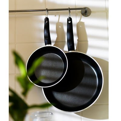 Set of 2 Lightweight Teflon Coated Non-Stick Frying Pans in 8 and 10" diameters. Black. Key features - The pan's low weight makes it easy to handle when filled with food. - Made from aluminum, which spreads heat evenly and energy efficiently, and makes it easier to regulate heat so the food does not burn and stick. - Treated with Teflon Classic non-stick coating that makes cooking and cleaning easy. Care instructions Handwash only. Suitable for use on gas cooktop. Suitable for use on ceramic glass cooktop. Suitable for use on electric cooktop. Product description Aluminum, Coated with Teflon(R) Classic, Phenolic plastic