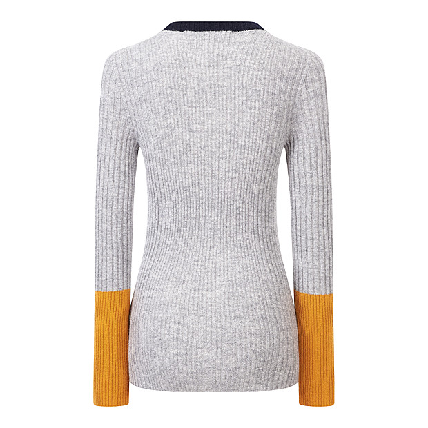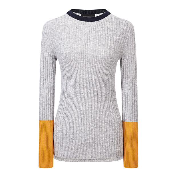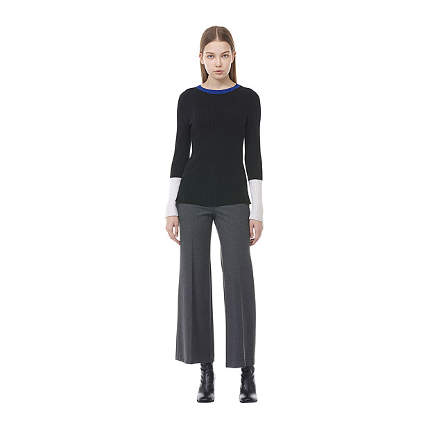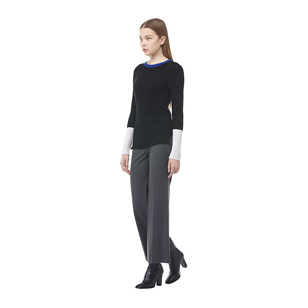 부드러운 터치감을 자랑하는 캐시미어 혼방 소재의 골지 니트