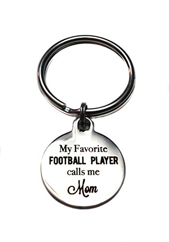 Product Description Keychain made with a 3/4" x 7/8" or 19mm x 22mm stainless steel "My favorite football player calls me mom." Can be used as a keychain, bag charm, zipper pull, etc. Makes a great football mom gift! 0
