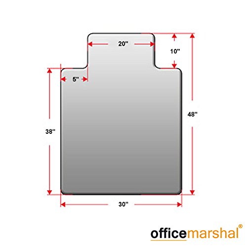 -. Binding : Office Product -. Brand : Office Marshal -. Feature : NEW ECO SERIES: Certified with the Blue Angel eco label for a healthy indoor environment, the new Office Marshal® exclusive eco series is your eco friendly solution to floor protection. Made from 100% recycled PET these mats are a great way to reduce your carbon footprint whilst maintaining the Office Marshal® superior standard of floor protection - 100% recyclable, BPA & phathalate free, and free from tin, lead and other metals. / PREMIUM PROTECTION: Designed to mimic the strength and durability of the original Office Marshal® polycarbonate mats, the eco series mats are rigid and durable. Protects all low/medium pile carpets, whilst remaining odour free and free from volatile toxic compounds to keep a healthy indoor environment. / EFFORLESS ROLL, STABLE GRIP: The unique surface texture allows your office chair to move easily while carrying out daily tasks, but has enough grip to maintain controlled rolling so the chair doesn't skid around. Ease of rolling between tasks promotes ergonomic posture and helps to considerably reduce the risk of leg fatigue. / TRANSLUCENT: Helps protect while not completely taking away from the beauty of your floor. These mats are not completely transparent; for a crystal clear mat, please see our polycarbonate range. / SUPER GRIP BACKING: Studded underside holds the mat firmly in place - Designed for use low/medium pile carpets (Max. pile: 0.6"). Office Marshal® best-selling chair mats are designed to provide high impact resistance and under standard use will not crack, curl, break, scratch or discolor. -. Label : Office Marshal -. Manufacturer : Office Marshal -. PackageQuantity : 1 -. ProductGroup : Office Product -. ProductTypeName : OFFICE_PRODUCTS -. Publisher : Office Marshal -. Studio : Office Marshal -. Title : Office Marshal Eco-Series Chair Mat with Lip for Carpet Floors, Translucent, 100% Recycled (PET), 100% BPA Free, Environmentally Friendly