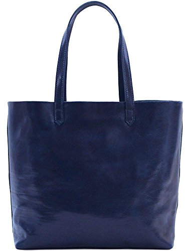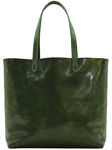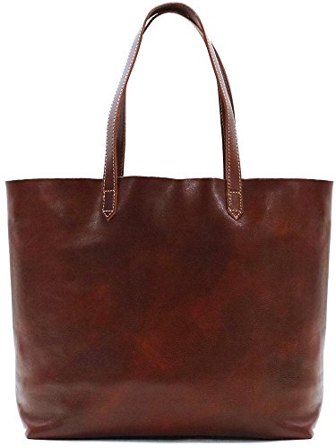 Product Description The Piazza Tote is made with full grain leather that was handmade Etruscan style in Santa Croce to soften, patina, and develop a silky touch. Only vegetable extracts and natural oils were used to create rich, vibrant color and a tender, semi-gloss finish. Over time this leather tote bag will soften and develop a beautiful patina. This leather is hand stained and the inside may have some "artisan fingerprints" as seen in the images - please take note of this characteristic. Piazza leather tote bag is available in Vecchio Brown, Tan, Yellow, Tuscan Red, Green, Navy Blue, and Black. Made in Italy 14" x 14" x 5" Inside Zip Pocket 0