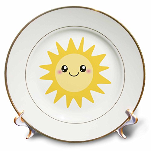 3dRose cp_113062_1 Cute Happy Sun-Kawaii Yellow Sunny Happy Face-Summer Sunshine Smiley on White-Kids-Children-Porcelain Plate, 8-Inch