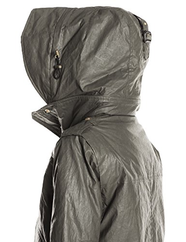 Coated water-resistant parka featuring removable drawstring hood and detachable fur collar