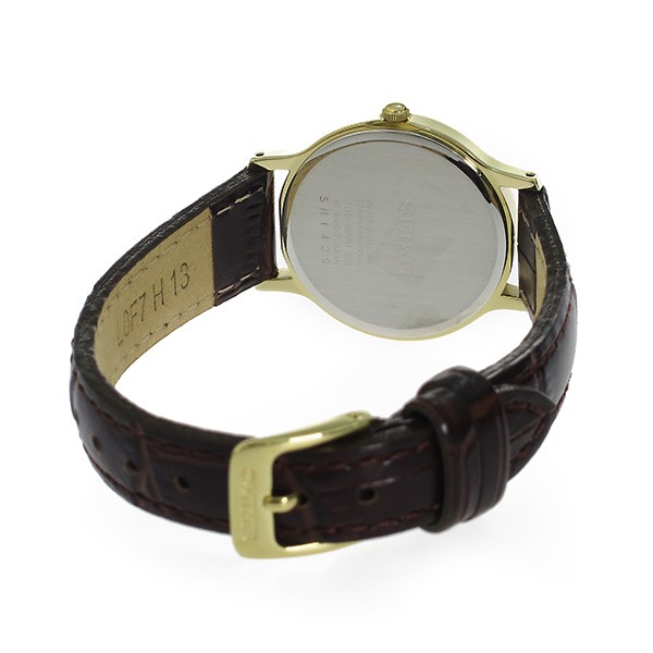 ソーラークオーツ、日常生活防水、カラー:ゴールド(文字盤)、ブラウン(ベルト)