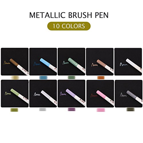 Premium Metallic Marker Pens,Set of 10 Colors,Permanent Metallic Color Painting Art Marker For Gift Card Making,DIY Photo Album,Scrapbooking Crafts(Brush Tip)