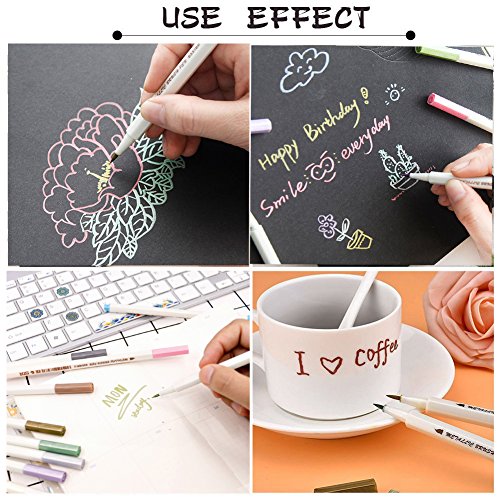- 【PREMIUM QUALITY】:Fine Metallic Markers for Adult Coloring Books with Gift Card Making!Soft Brush Tip,Great Flow of Ink.